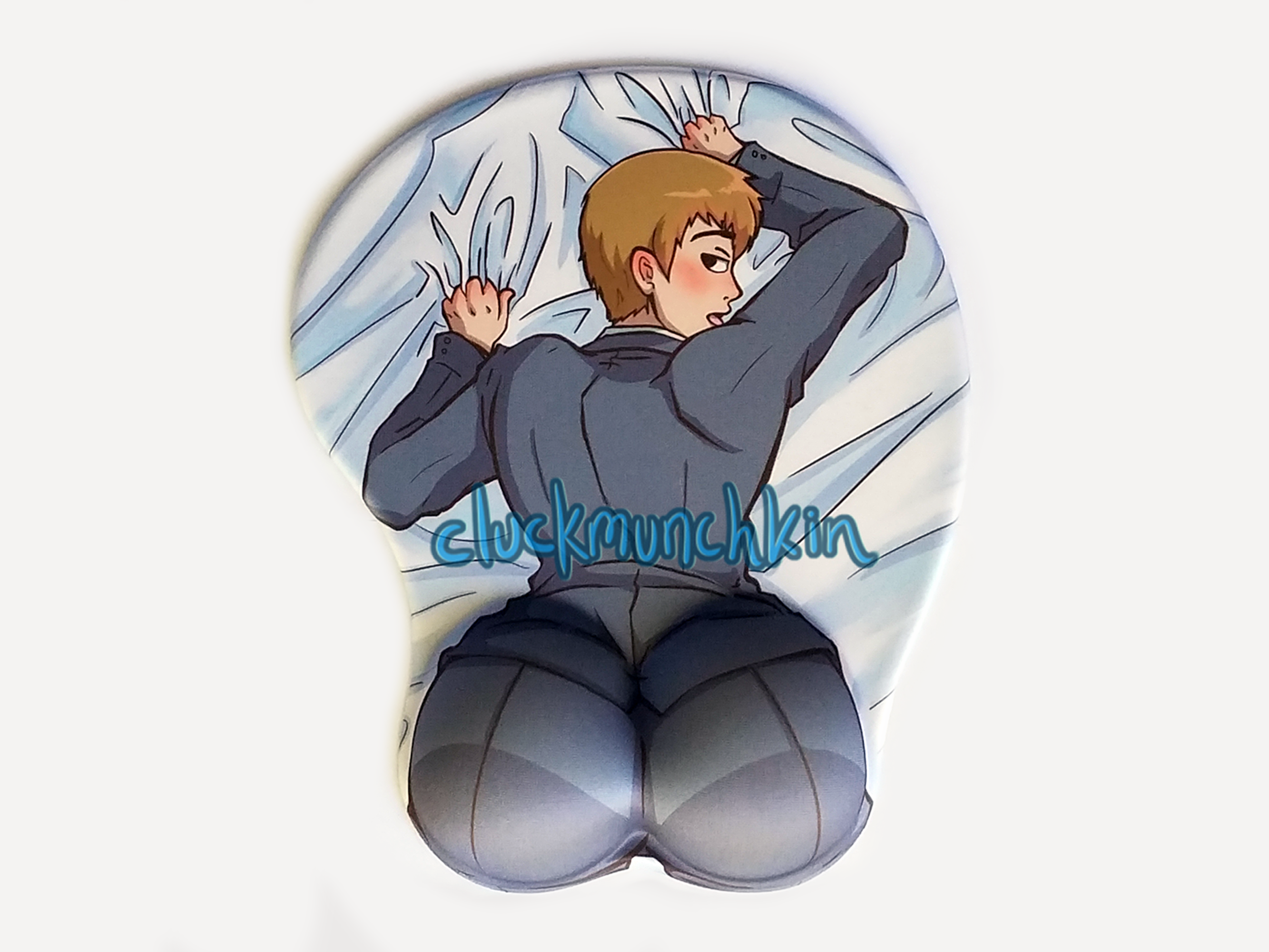 A 3D Butt mousepad featuring Reigen Arataka from Mob Psycho 100! He looks back at you seductively as he claws the sheets. You know you wanna squish those big fake psychic cheeks.